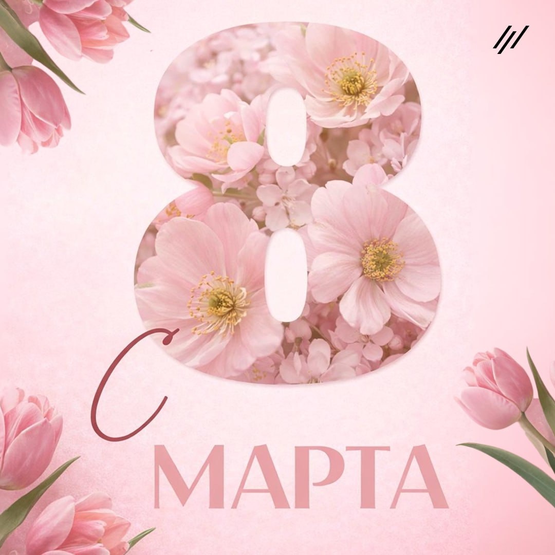 ! В весенний праздник говорим спасибо, что наполняете каждый день мир вокруг красотой, теплотой и радостью, вдохновляете и делаете сильнее.🌹 Пусть весна принесет радостные моменты, яркие события, любовь, улыбки и море цветов! Желаем уверенного продвижения к новым профессиональным вершинам, свежих идей, баланса между карьерой и личным развитием, который вдохновляет на большие достижения. 💚 С праздником 8 марта!🌷
