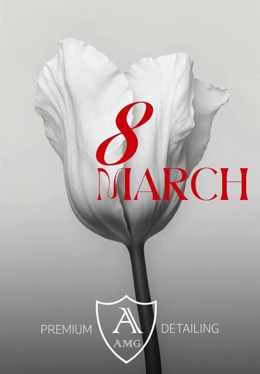 ! 🌷 Поздравляем Вас с 8 марта! ✨ В этот день мы хотим поблагодарить вас за то, что вы делаете наш мир прекраснее, вдохновляете нас на новые достижения и задаете высокие стандарты во всем — от стиля до отношения к деталям. 🤍 Ваше стремление к совершенству созвучно философии нашей студии. Желаем вам всегда оставаться на высоте, блистать и добиваться поставленных целей. 🕊️ Пусть в вашей жизни будет больше приятных событий и меньше поводов для беспокойства. С праздником весны, красоты и вдохновения! 🌿 С уважением, команда Детейлинг пространства AMG🩶