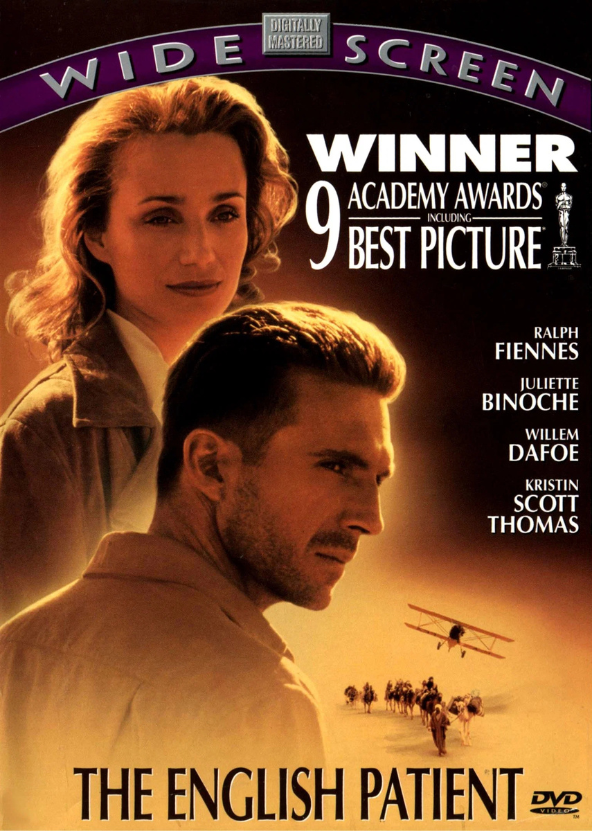 Фильм “Английский пациент” 1996 г. Драма, мелодрама. Экранизация одноименного романа канадского писателя Майкла Ондатже, который мы не читали, но знаем о его ключевых особенностях, поэтому будем оценивать экранизацию как самостоятельное произведение. Мы увидели данную картину, когда ещё трудились в сети магазинов “Союз”, где DVD диск с данной картиной очень часто продавался. А издавала тогда его компания “Вест видео” (у которой с наполнением всё хорошо, тут и выбор языков и субтитров, а ещё бонусы, переведённые закадровым голосом (что было редкостью для тогдашних русских издателей)), но тогда интереса посмотреть сея картина не вызывала, и мы о ней благополучно забыли. Вспомнили лишь недавно, мы думаем, что это была рука судьбы, и решились на просмотр. И она нас потрясла, в хорошем смысле. И вот краткое мнение – Отличная драма об израненных душах и сердцах, полностью заслужившая свои девять Оскаров. Да и ещё имя режиссера для нас не пустой звук, а именно снимал картину Энтони Мингелла, которого мы помним по отличной драме и мелодраме “Холодная гора”. А наша сегодняшняя картина имеет как явные достоинства, так и недостатки (без них никуда), поэтому следует закончить столь важное вступление и перейти к интересному.