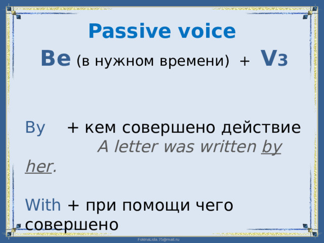 В русском языке мы часто говорим: «Дом построили», «Письмо отправлено», «Кофе выпит». Нас не волнует, кто именно это сделал. Важен сам факт. В английском языке для этого существует специальный механизм — страдательный залог, или Passive Voice [ˈpæsɪv vɔɪs]. Сегодня мы разберёмся, как работает эта грамматическая конструкция и почему без неё в английском никуда. Поддержать наш канал вы можете по ссылке. Подписывайтесь на нас в телеграм! Для начала давайте посмотрим на два предложения. В первом случае нам важно, кто совершил действие — бабушка. В английском это называется Active Voice [ˈæktɪv vɔɪs] (действительный залог). Во втором случае нам всё равно, кто строил. Может, бабушка, может, дедушка, а может, стройтрест. Главное — дом существует. Это и есть Passive Voice. В английском та же логика: Чтобы превратить активное предложение в пассивное, нам нужен простой рецепт. Возьмите: Глагол to be (в нужном времени) + 3-я форма смыслового глагола (Past Participle) Третья форма — это либо зна