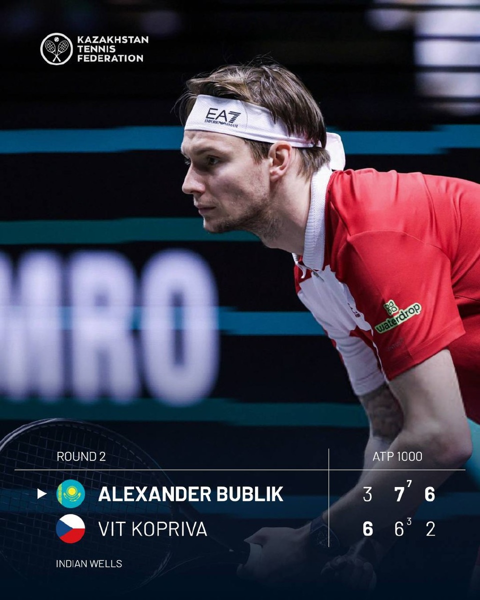 Успешное выступление на турнире в Индиан-Уэллсе продемонстрировал казахстанский теннисист Александр Бублик. Во втором круге он встретился с чешским спортсменом Витом Копршива. Из трех сетов казахстанец взял два — 3:6, 7:6 (7:3), 6:2. И вышел в третий круг. К слову, в прошлом году Александр Бублик на турнире в Индиан-Уэллсе уже в первом круге проиграл японскому теннисисту Ёсукэ Ватануки. Фото: ФТК Присылайте фото, видео и информацию анонимно — в наш бот t.me/CentralMedia24_KZbot или на WhatsApp +77080323818 😎Следите за новостями тут: https://dzen.ru/id/67fc8dffe608bc669477821e