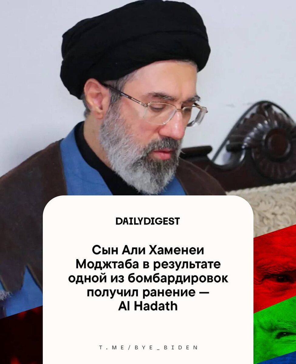 : 🔹Сын Али Хаменеи Моджтаба в результате одной из бомбардировок получил ранение — Al Hadath. 🔹Трамп утверждает, что Иран якобы несет ответственность за атаку на начальную школу для девочек на юге страны. 🔹Иран не отдаст ни пяди своей территории — президент страны Пезешкиан. 🔹Патриарший экзархат Африки: экстремисты напали на христианское селение и убили прихожан РПЦ в Нигерии. 🔹Закон о возможности транзита ядерного оружия через Финляндию готовили тайно, заявила Минья Коскела, чьи слова приводит газета Yle. 🔹Трамп утверждает, что Иран хочет вести мирные переговоры, а США — нет. 👍«БайБайден» в МАХ