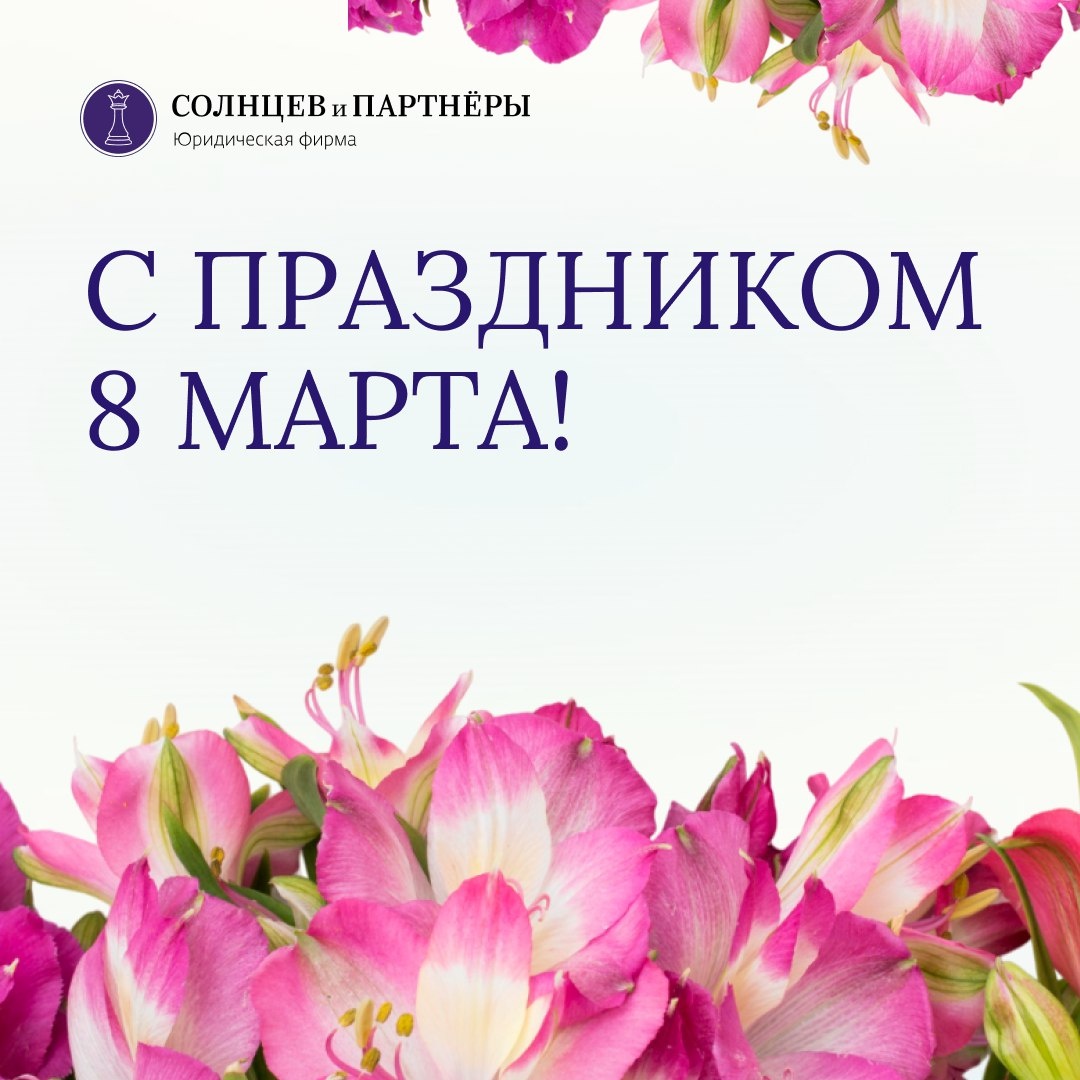 ! Этот день — ещё один повод сказать слова благодарности женщинам, которые делают мир вокруг теплее, добрее и красивее. Ваша энергия, забота и сила вдохновляют и помогают двигаться вперёд. ✨ Пусть в вашей жизни будет больше радостных моментов, искренних улыбок и внимания близких людей. Пусть рядом всегда будут поддержка, любовь и уверенность в завтрашнем дне. 💐 С уважением и наилучшими пожеланиями, Станислав Солнцев Управляющий партнёр юридической фирмы «Солнцев и партнёры» ⚖️