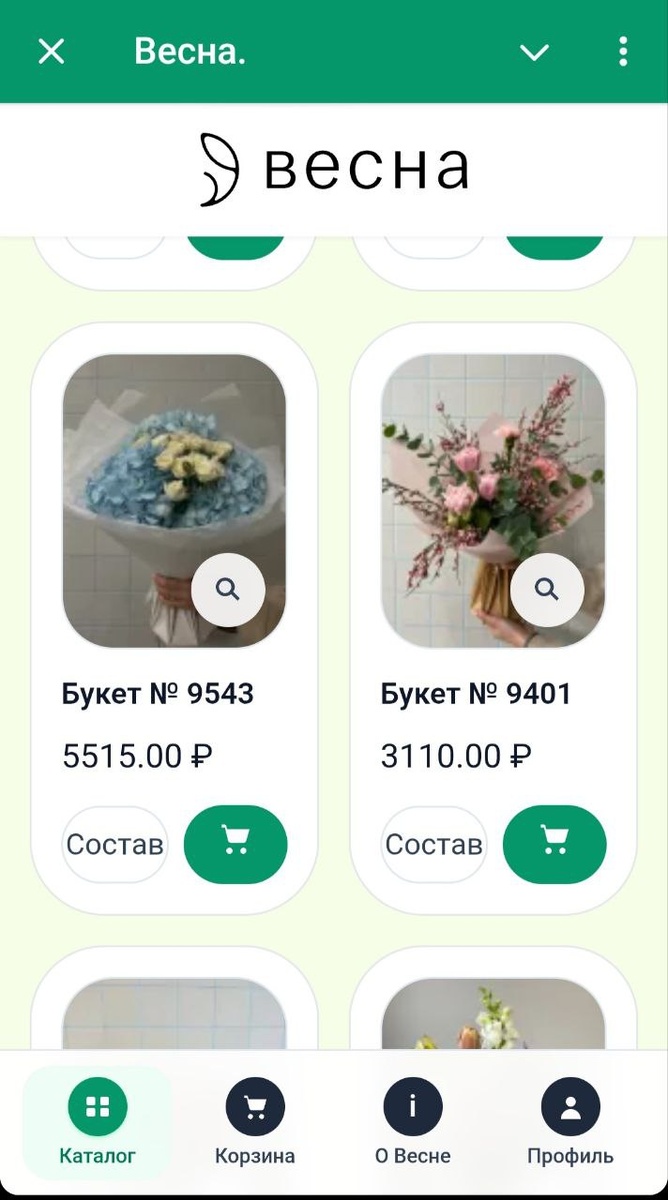 ✨Заказать цветы в любой момент прямо в Телеграм, без «сюрпризов» в доставке - реально!✨ 0 минут на сборку: Вы покупаете уже готовый авторский букет, который прямо сейчас стоит на витрине 100% совпадение: В нашем приложении — живое фото конкретного букета. Что на экране, то и в руках Мгновенная отгрузка: Клик — и курьер уже в пути. Никаких долгих согласований и замен Удобно. Не нужно искать по интернет-магазинам однотипные букеты или ждать пока вам помогут выбрать заказ Переходите в наше "цветочное Телеграм-приложение Весна Апп и добавляйте его в закладки