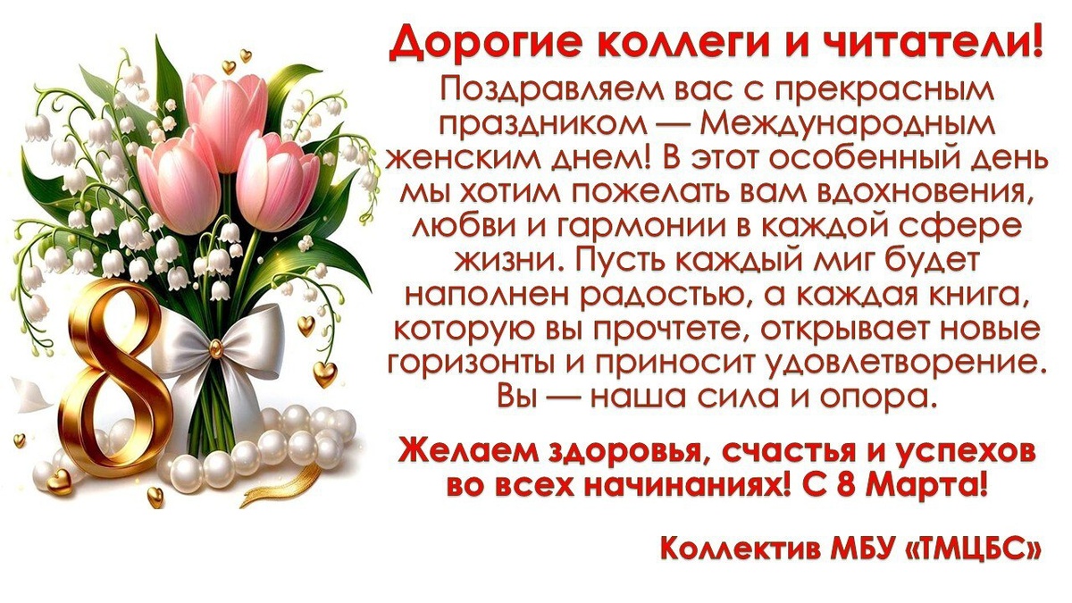 🌹🌹🌹Поздравление от коллектива МБУ «ТМЦБС» с Международным Днем 8 Марта