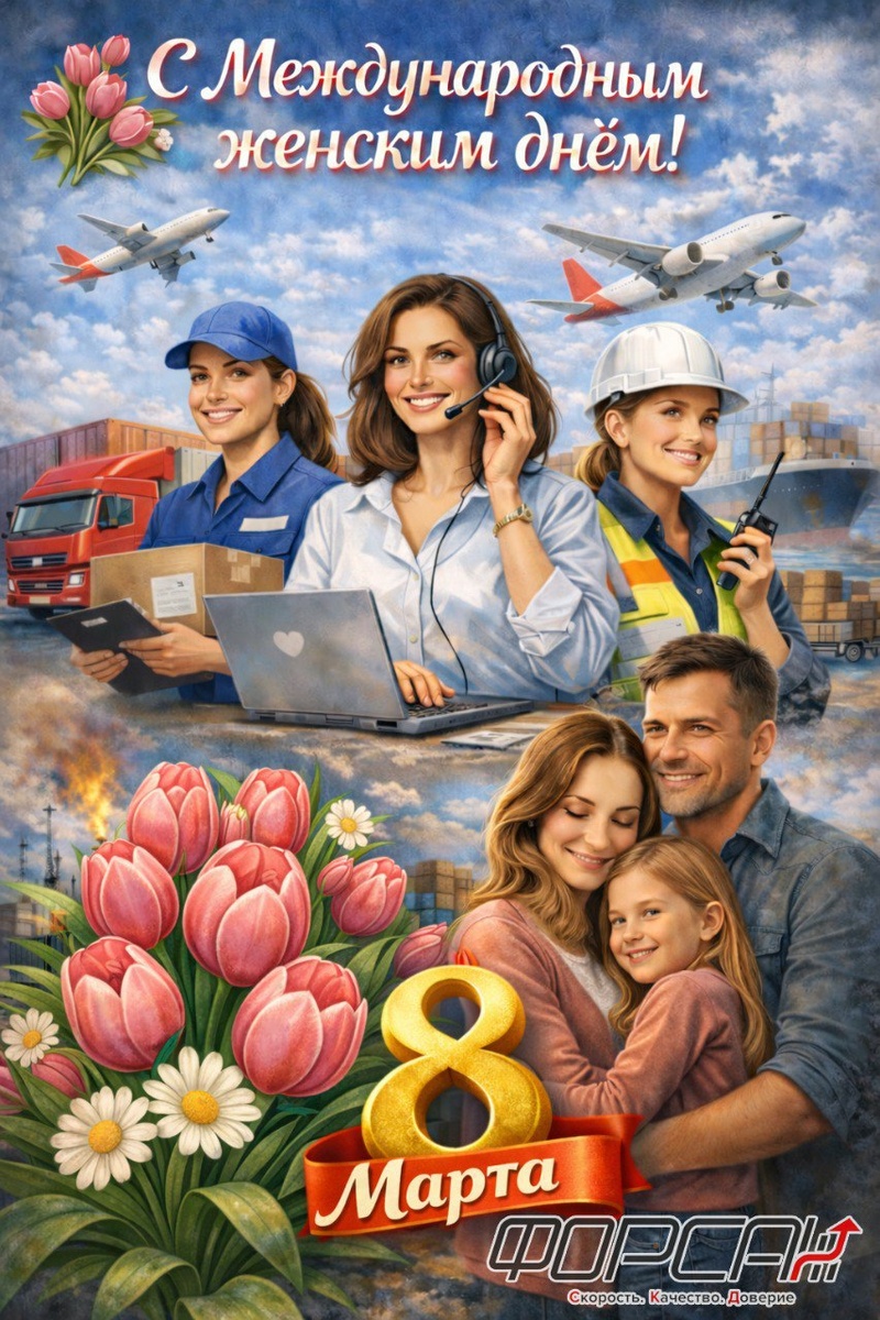 ! 🌷 8 Марта — это день уважения, признательности и искренней благодарности всем женщинам. За силу и мягкость одновременно. За мудрость, терпение и удивительную способность делать мир вокруг лучше — дома, в работе и в жизни. Вы вдохновляете, поддерживаете, объединяете людей и создаёте атмосферу, в которой хочется двигаться вперёд. Благодаря вам в делах появляется порядок, в сложных задачах — решения, а в буднях — тепло и смысл. Отдельные слова благодарности — тем, кто связан с логистикой и грузоперевозками. Тем, кто управляет процессами, держит под контролем сложные маршруты, ведёт переговоры, работает на складах, в офисах и на объектах. В отрасли, где важны скорость, точность и выдержка, вы каждый день доказываете свой профессионализм, ответственность и силу характера. Пусть этой весной будет больше поводов для радости, улыбок и вдохновения. Пусть в работе всё складывается легко, задачи решаются вовремя, а маршруты всегда ведут к успеху. Пусть рядом будут поддержка, забота и люди