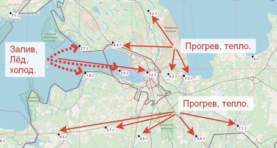 После пяти дней теплой погоды с дождями и плюсовой температурой ледяной покров на Финском заливе понемногу разрушается. Как рассказал синоптик Александр Колесов, сильный западный ветер сжимает лед к востоку. На западе залива уже видны значительные промоины, особенно в районе горла. Восточная часть пока держится лучше, но и там появились отдельные разводья. 📷: t.me/kammeteo Читай нас в MAX! | Читай нас в Telegram