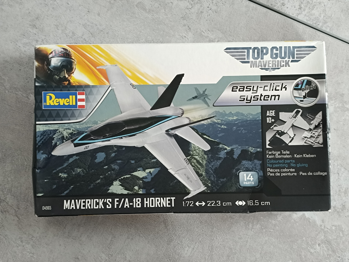 Привет! Уже второй год идет моему блогу. За время его существования были и статьи об автомобилях, обзоры и стройки моделей БТТ и, очень редко, автомобилей. А вот авиации не было совсем. Пора исправлять историческую несправедливость! Сегодня обзор на дебютную для меня модель во многих смыслах. Первая модель от Ревелл, первая модель самолета, первая модель по фильму. Собственно, модель многофункционального палубника F\A-18 Hornet в ливрее капитана Митчелла из фильма "Топ Ган: Маверик" Доброго времени! Рад Вам на моем канале! Для Вас пишет Дмитрий Лыков, автор канала Сервисный консультант - начинающий моделист и фанат автомобилей Чтобы не пропустить новое - подпишитесь на канал: А началось все с краски по хорошей скидке, в том же Детском мире, который судя по всему распродает остатки моделей без дальнейших закупок, был приобретен описываемый тут набор Коробка без внутренней дополнительной коробки, слегка побилась при доставке. Было опасение, что детали пострадали, но, к счастью, нет. Все