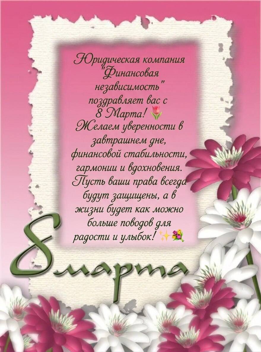 ! Поздравляем вас с 8 Марта! Пусть каждый день будет наполнен радостью, улыбками и вниманием близких. Желаем крепкого здоровья, счастья, любви и вдохновения. Пусть в вашей жизни всегда будет место для мечты, а рядом будут люди, которые ценят и поддерживают вас. С праздником весны, красоты и нежности! 💐