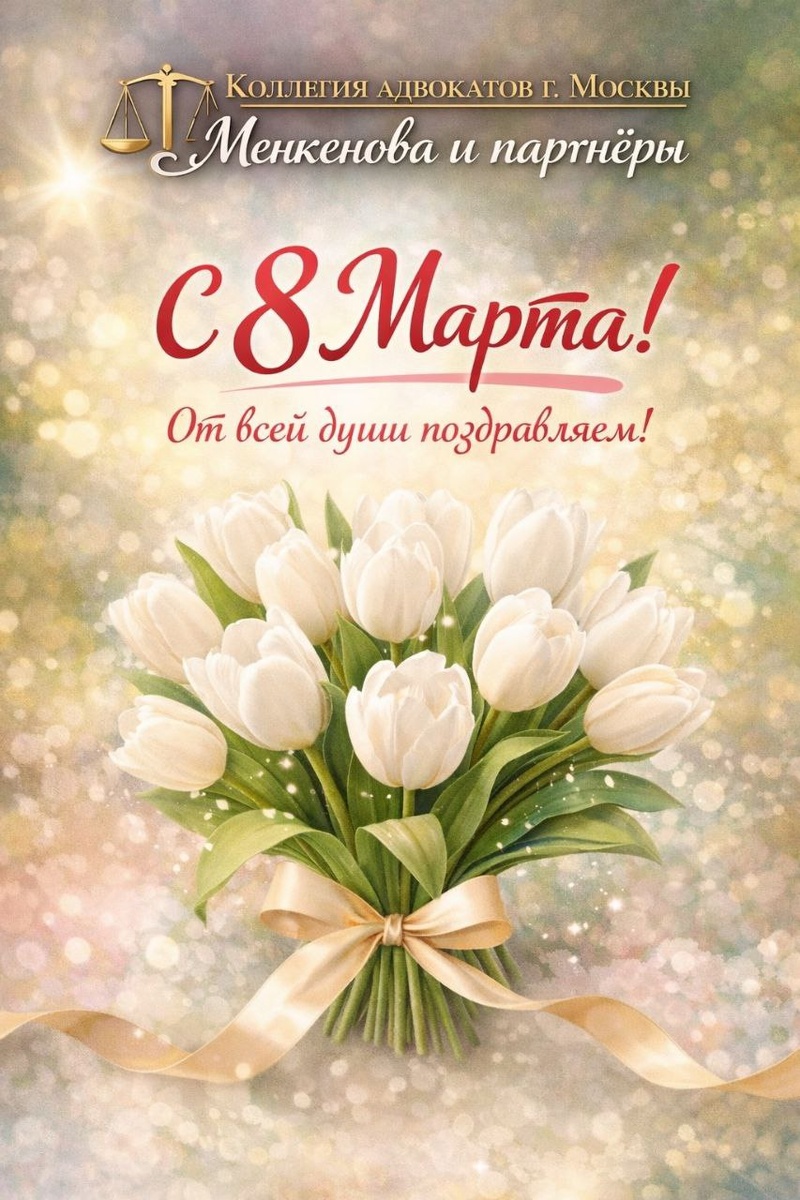 ! Поздравляем вас с прекрасным весенним праздником — 8 Марта! Этот день наполнен особым теплом, благодарностью и уважением к вам — сильным, мудрым, талантливым и невероятно вдохновляющим. Вы умеете добиваться успеха в профессии, поддерживать близких, создавать вокруг себя атмосферу заботы, доброты и гармонии. Пусть в вашей жизни всегда будет место радости, любви и новым возможностям. Пусть сбываются мечты, рядом будут надёжные люди, а каждый день приносит уверенность, вдохновение и счастье. Желаем вам крепкого здоровья, благополучия, весеннего настроения и как можно больше поводов для улыбок! 🌸 С искренними поздравлениями, Коллегия адвокатов г. Москвы «Менкенова и партнёры» 💐 @menkenovaipartneri