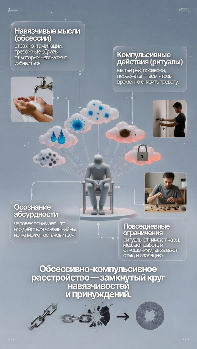 Психиатры называют это обсессивно-компульсивным расстройством. В народе — ОКР. И это не про «любовь к порядку», как думают многие. Это про ад внутри.