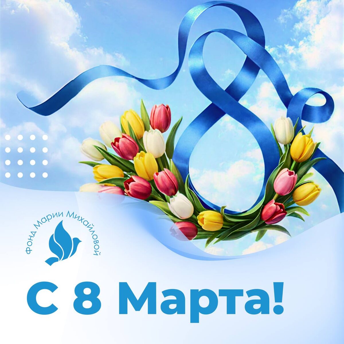 ! 💐 Милые женщины! Вы — источник вдохновения, нежности и света. Спасибо, что наполняете мир добротой, заботой и теплом. Спасибо за вашу чуткость и отзывчивость, которые помогают делать добрые дела. ✨ Пусть в вашем сердце всегда живет весна, а в жизни — радость и счастье. Желаем вам здоровья, улыбок, гармонии и исполнения самых смелых желаний! Пусть каждый день дарит приятные сюрпризы и новые возможности. С любовью и уважением, Фонд Марии Михайловой 🩵