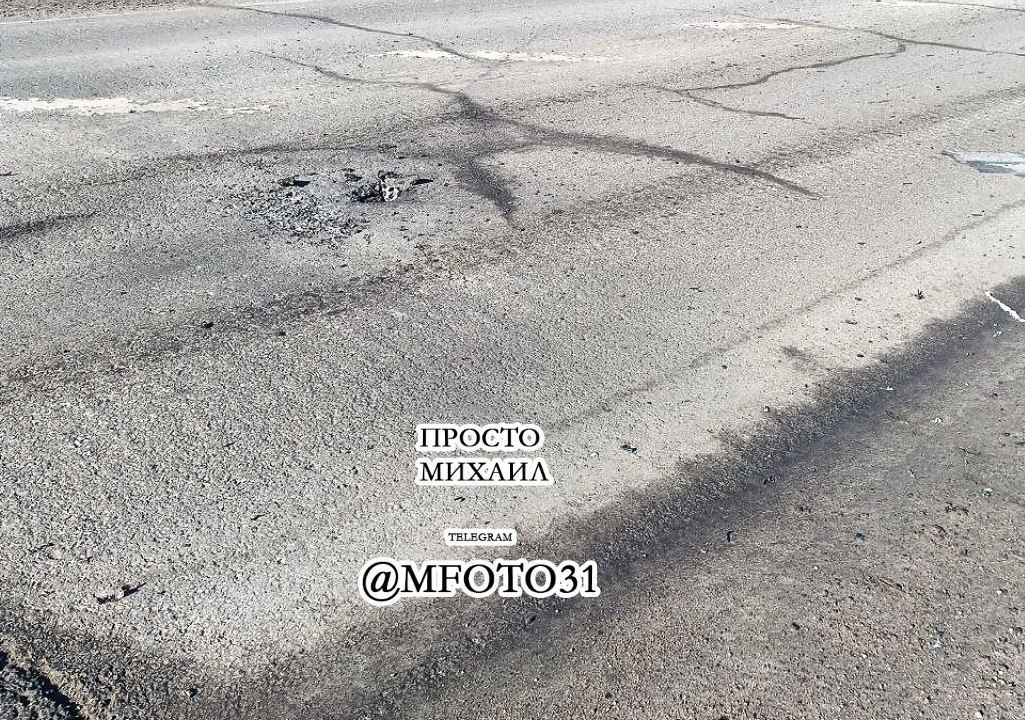 Шебекино Титовка дрон пытался атаковать движущийся автомобиль. Сдетонировал в дорожное полотно.