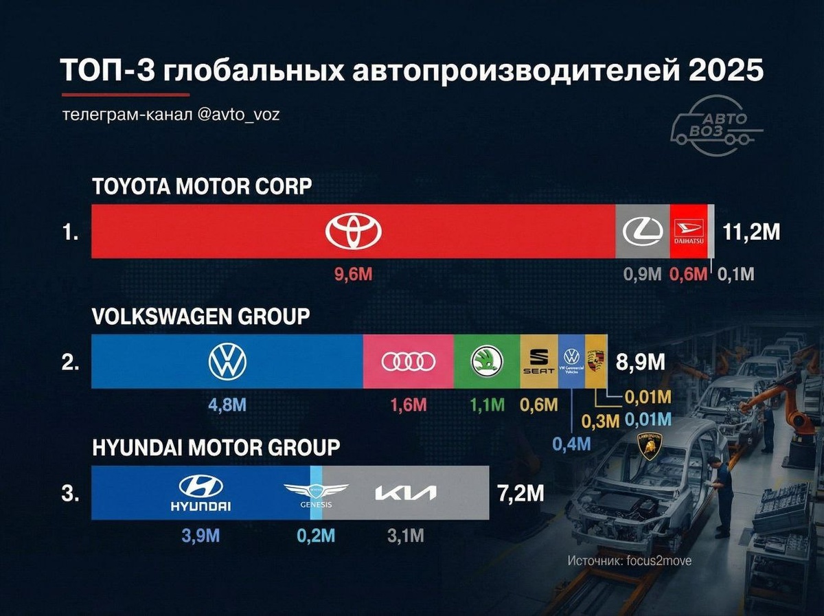 - Hyundai&Kia motor group – 7,2 млн.