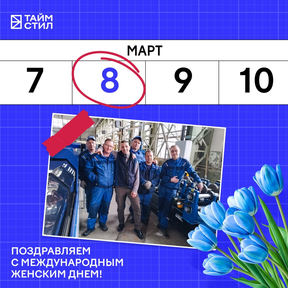 🌸Дорогие женщины, поздравляем вас с Международным женским днём — 8 Марта. Ваша мудрость чувствуется в решениях, ваша поддержка — в делах, ваша сила — в характере. И пусть внешняя нежность вводит в заблуждение, мы знаем: в вас — огромная энергия, стойкость и уверенность, которые помогают двигаться вперёд и вдохновляют окружающих. Вы умеете совмещать мягкость и принципиальность, заботу и профессионализм. Мы искренне ценим ваш труд, внимание к деталям и ответственность. Желаем вам крепкого здоровья, радости, гармонии и новых успехов — в работе и в жизни. Пусть каждый день будет полон улыбок, радости и любви. С благодарностью и теплом — мужской коллектив компании «Тайм Стил».