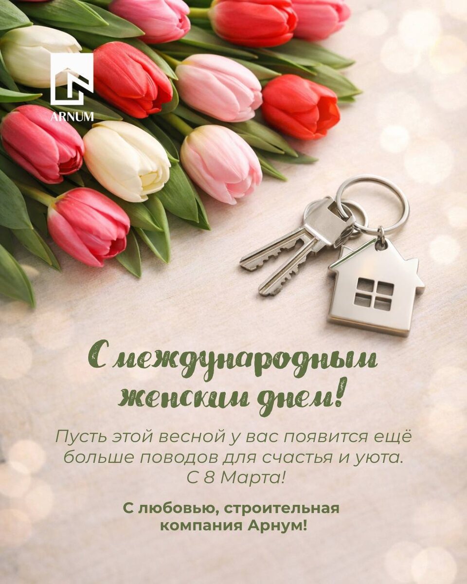 Пусть в вашей жизни будет больше моментов радости, уюта и вдохновения. Пусть дом всегда остаётся местом, где вас ждут тепло, любовь и счастье. С праздником весны, милые дамы! С 8 Марта! 💐 С уважением, строительная компания ARNUM!