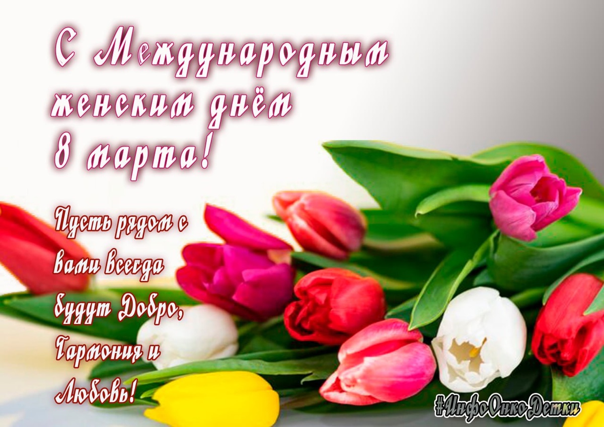 ! От всей души поздравляем вас с Международным женским днем — праздником весны, нежности и надежды! Вы делаете этот мир теплее и добрее. Вы — символ уюта, любви и невероятной силы. Ваша чуткость и доброта особенно важны в трудные минуты, когда болеют близкие. Именно вы помогаете справляться с любыми невзгодами, сохраняя в сердце веру и свет. Спасибо мамам за их бесконечное терпение, врачам — за их большие сердца, волонтерам — за их отзывчивость, и каждой женщине — за ту удивительную энергию, красоту и вдохновение, которыми вы преображаете всё вокруг! Вы — истинное воплощение любви, нежности и удивительной стойкости. В этот день мы хотим пожелать вам: ✨ Внутреннего света и гармонии; ✨ Крепкого здоровья вам и вашим близким; ✨ Поддержки и добрых событий в каждом дне; ✨ Профессиональных успехов и личного счастья; ✨ Пусть в вашей жизни будет больше моментов для отдыха, поддержки близких и заслуженной радости; ✨ Пусть каждый ваш день будет наполнен улыбками, а жизнь — только хорошими но