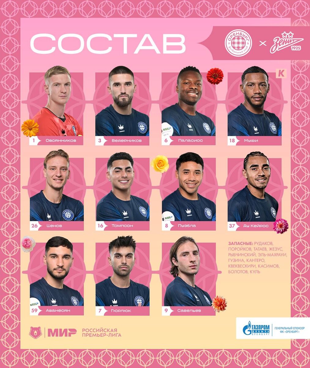 💙 Овсянников в воротах, Ду Кейрос в центре, Муфи капитан! #ФКОренбург #ОренбургЗенит