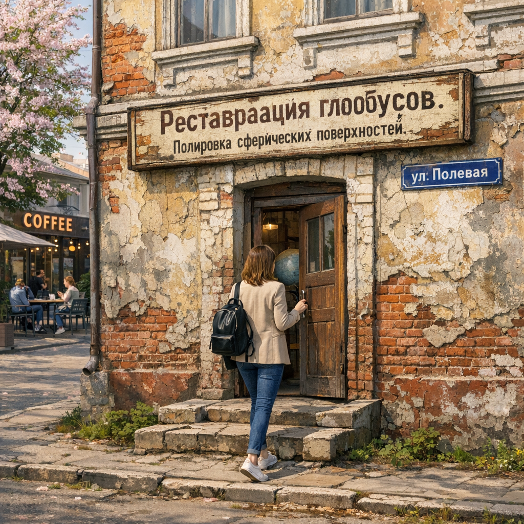 В нашем городе, который в сущности ничем не отличается от прочих провинциальных городов — те же липы на бульваре, тот же аптекарь с неизменным кашлем и тот же ветер, несущий по весне запах талого снега и кофе из новой кофейни, — вдруг появилась одна странная история. Сначала её рассказывали шёпотом. Говорили, будто на улице Полевой, в старом двухэтажном доме с облупившейся вывеской, работает некий мастер по имени Лев. По профессии он, кажется, реставратор — занимается глобусами. Самыми настоящими: деревянными, медными, старинными, с пожелтевшими материками и океанами. Но разговоры шли вовсе не о глобусах. — Он полирует, — говорили дамы, наклоняясь друг к другу через столик в кофейне.