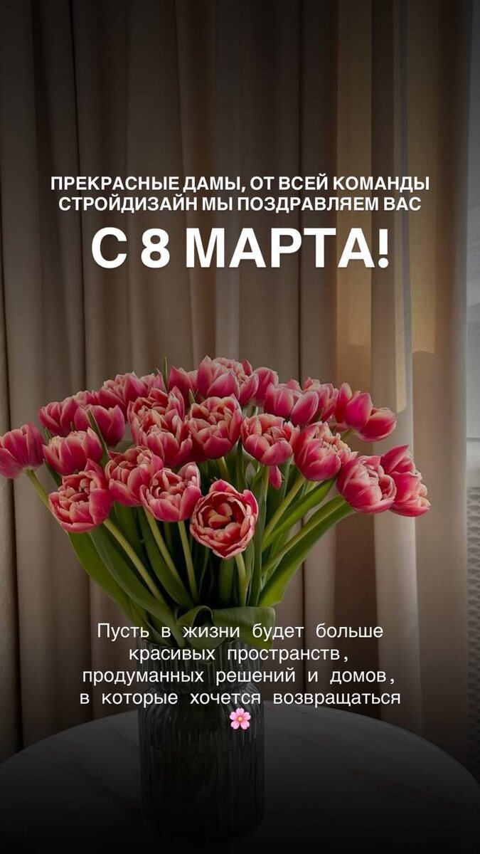 🌷 Для нас этот день про женщин, которые создают уют, принимают решения, выбирают, каким будет дом, и доверяют нам самое важное — своё пространство Пусть в вашей жизни будет больше поводов радоваться своему дому, своим решениям и результату, который действительно нравится. А сложные вопросы ремонта и проектирования мы всегда готовы взять на себя ❤️