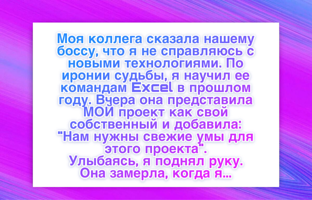 “Одна коллега по имени Анна рассказала начальнику, что у меня проблемы с технологиями. Это было забавно, потому что год назад я сам учил ее работать в таблицах. На следующий день она представила команде новую систему для клиента. На самом деле это была моя система, но она ни разу не упомянула мое имя и закончила презентацию словами о том, что нам нужны свежие цифровые умы. Я спокойно поднял руку и спросил, какую версию системы она показывает, до или после того, как клиент отклонил первую автоматизацию. Она замерла и ответила неправильно. Тогда я включил демонстрацию экрана, открыл рабочую панель клиента и показал всем финальную версию решения. В комнате стало тихо. После встречи начальник попросил меня остаться. К концу дня система уже официально была записана на мое имя, а Анна просила меня помочь ей разобраться с технической частью.”