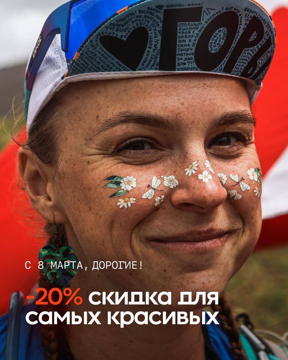 ! ❤️ Вы выходите на старт и легко нагоняете на подъемах здоровых парней. Вы часами можете саппортить своего атлета в любую погоду, чтобы вовремя подать бачок и сказать те самые слова поддержки. Именно вы делаете этот суровый, холодный спорт живым и красивым. Ваша эмпатия, сила и любовь наполняют смыслом каждую железную дистанцию. Вы — душа нашего проекта. С 8 Марта! Только сегодня, ровно на 24 часа, дарим весенний бонус: −20% для самых красивых, смелых и настоящих. 🎟 Промокод: KRASOTA