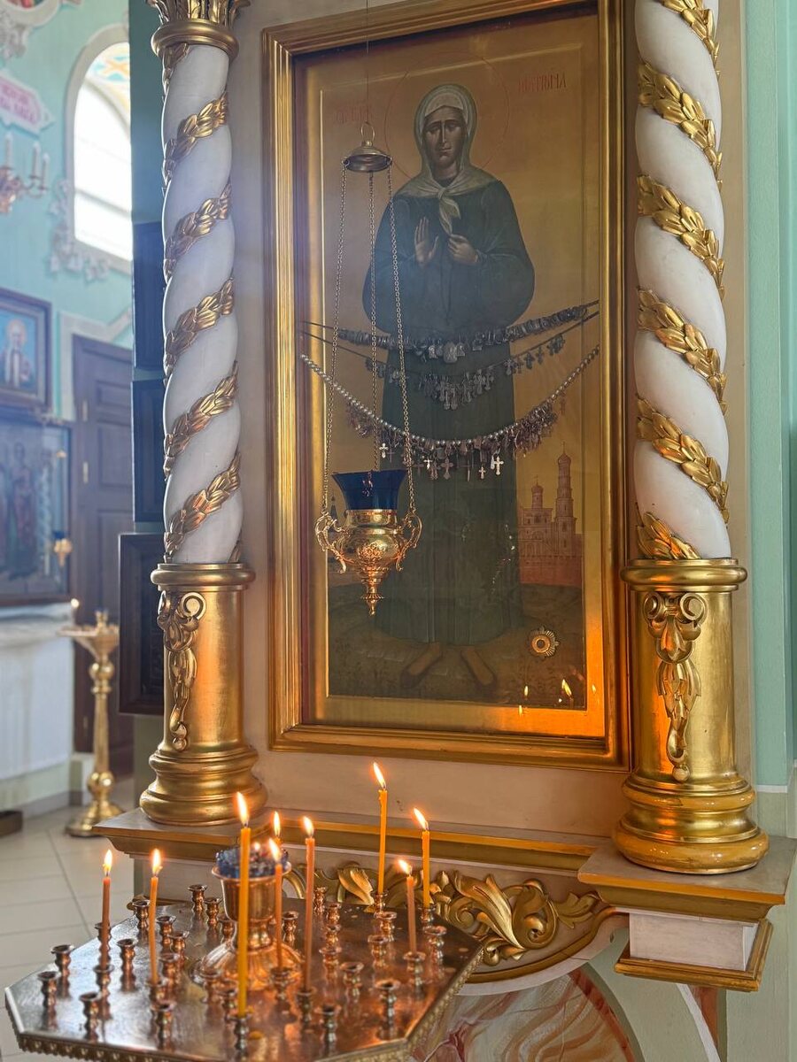 Величаем тя, святая праведная блаженная Матроно, и чтим святую память твою, ты бо молиши о нас Христа, Бога нашего