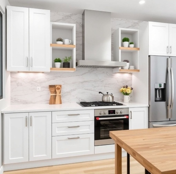 Для большинства кухонь оптимален комбинированный подход: клеевой монтаж на ровных участках + обрешетка в зонах с коммуникациями.