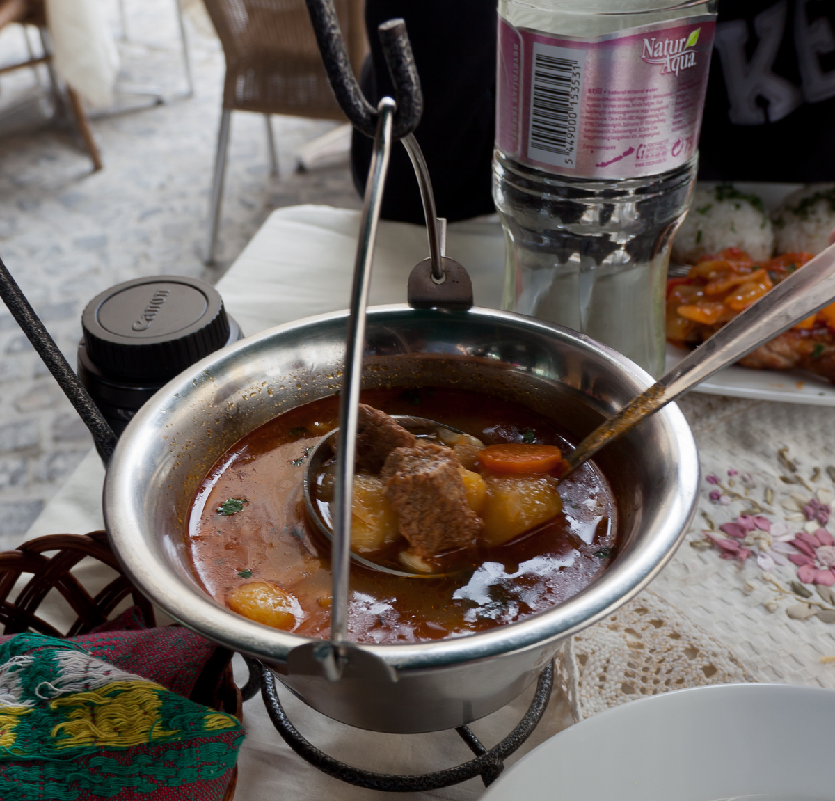 Для всего этого нам нужно еще 3 литра воды. И у нас это есть дома! Тщательно очищенное мясо варится со всем количеством воды (которую мы без проблем нашли дома). Для того чтобы оно стало мягким, требуется от трех до четырех часов, и очень важно постоянно медленно варить его, так как только тогда получится прозрачный суп. ! Когда начнет образовываться пена, аккуратно снимите ее. Добавьте соль, перец и овощи, когда суп станет достаточно прозрачным. Варите на медленном огне, пока мясо не станет мягким. После снятия с огня дайте немного постоять, чтобы бульон стал прозрачным. Перед пода