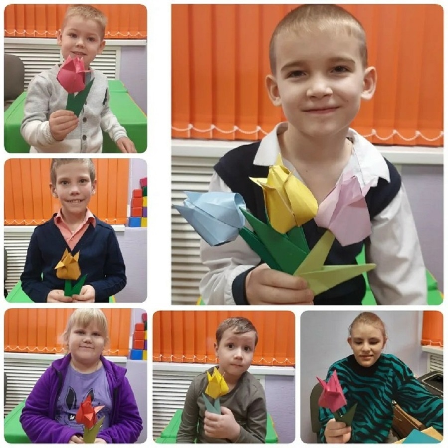Этот процесс способствовал развитию мелкой моторики, пространственного мышления и творческих способностей детей, а также формированию у них навыков эстетического восприятия и художественного самовыражения. Особое внимание уделялось созданию благоприятной психологической атмосферы и воспитанию у детей чувства ответственности и желания дарить радость своим близким. В ходе занятия дети продемонстрировали высокую степень концентрации и заинтересованности, что свидетельствует о значимости для них процесса творческой деятельности. Каждая поделка, созданная детьми, являлась результатом их индивидуального вклада и эмоциональной вовлеченности. По завершении занятия участники осознали, что изготовленные ими тюльпаны станут прекрасным подарком для их матерей и бабушек, что, в свою очередь, будет способствовать укреплению семейных связей и созданию праздничного настроения в домашних условиях. Таким образом, данное мероприятие не только способствовало развитию у детей важных когнитивных и эмоционал