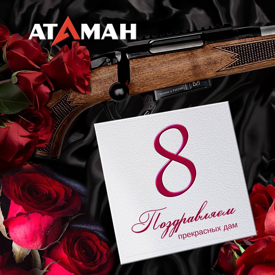 Поздравляем прекрасную половину с праздником 8 марта! Мы знаем, что за Вашей внешней хрупкостью скрывается невероятная сила. Завод АТАМАН желает вам весеннего настроения, метких выстрелов, а также радости по жизни!