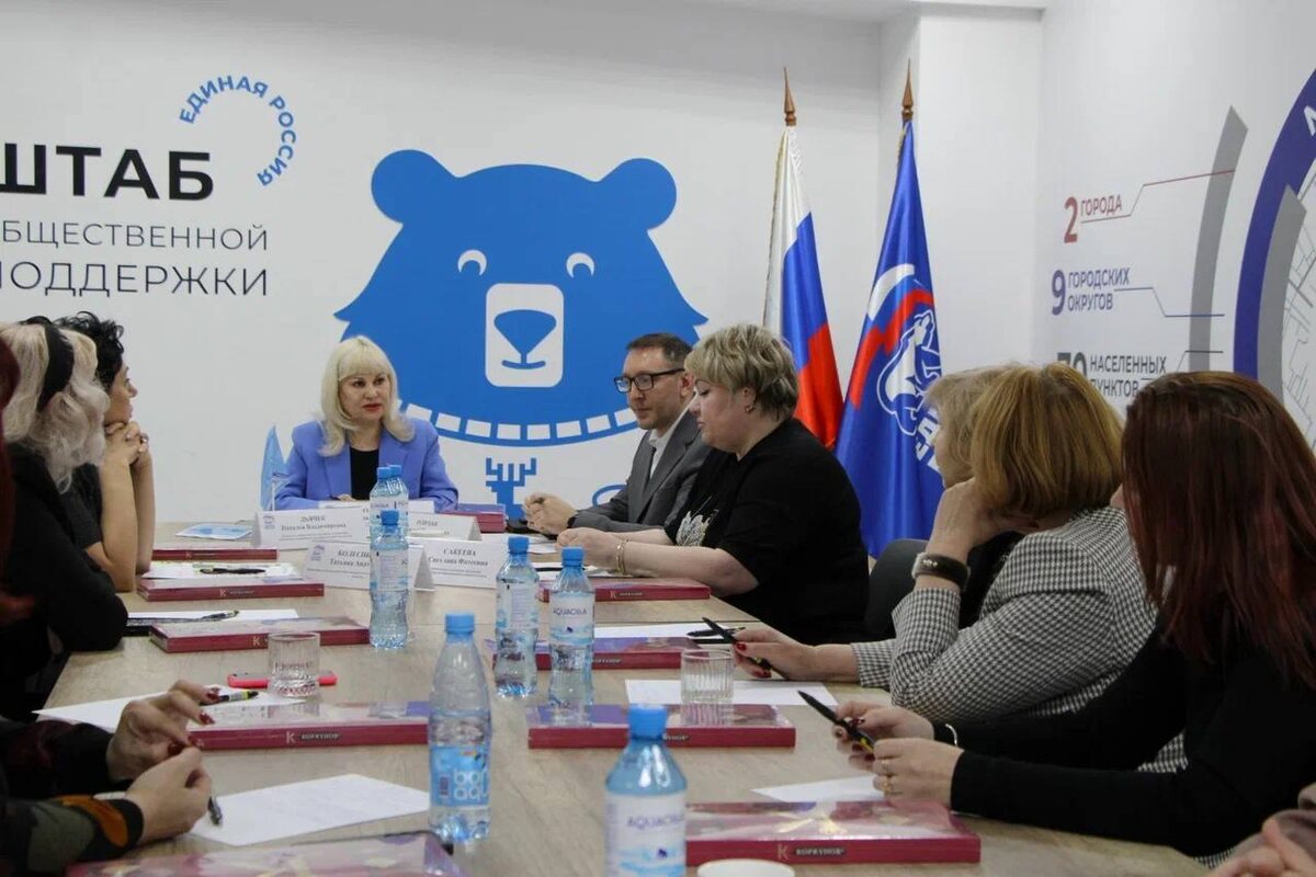 В Штабе общественной поддержки прошла встреча активисток партпроекта «Женское движение Единой России», представительниц Союза женщин России, Центра поддержки семей участников СВО, специалистов в сфере образования и науки, представителей профсоюза работников культуры Магаданской области.