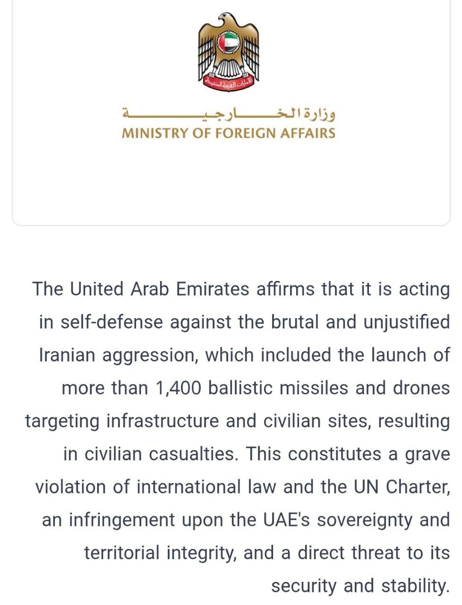 UAE does 'NOT seek to be drawn into any conflict' — MFA statement