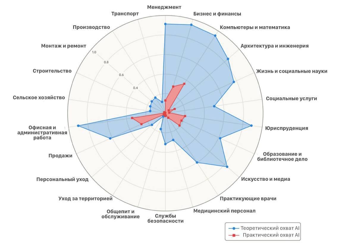 Ученые из Anthropic разработали диаграмму профессий, которые могут оказаться под угрозой из-за внедрения ИИ — многим стоит насторожиться