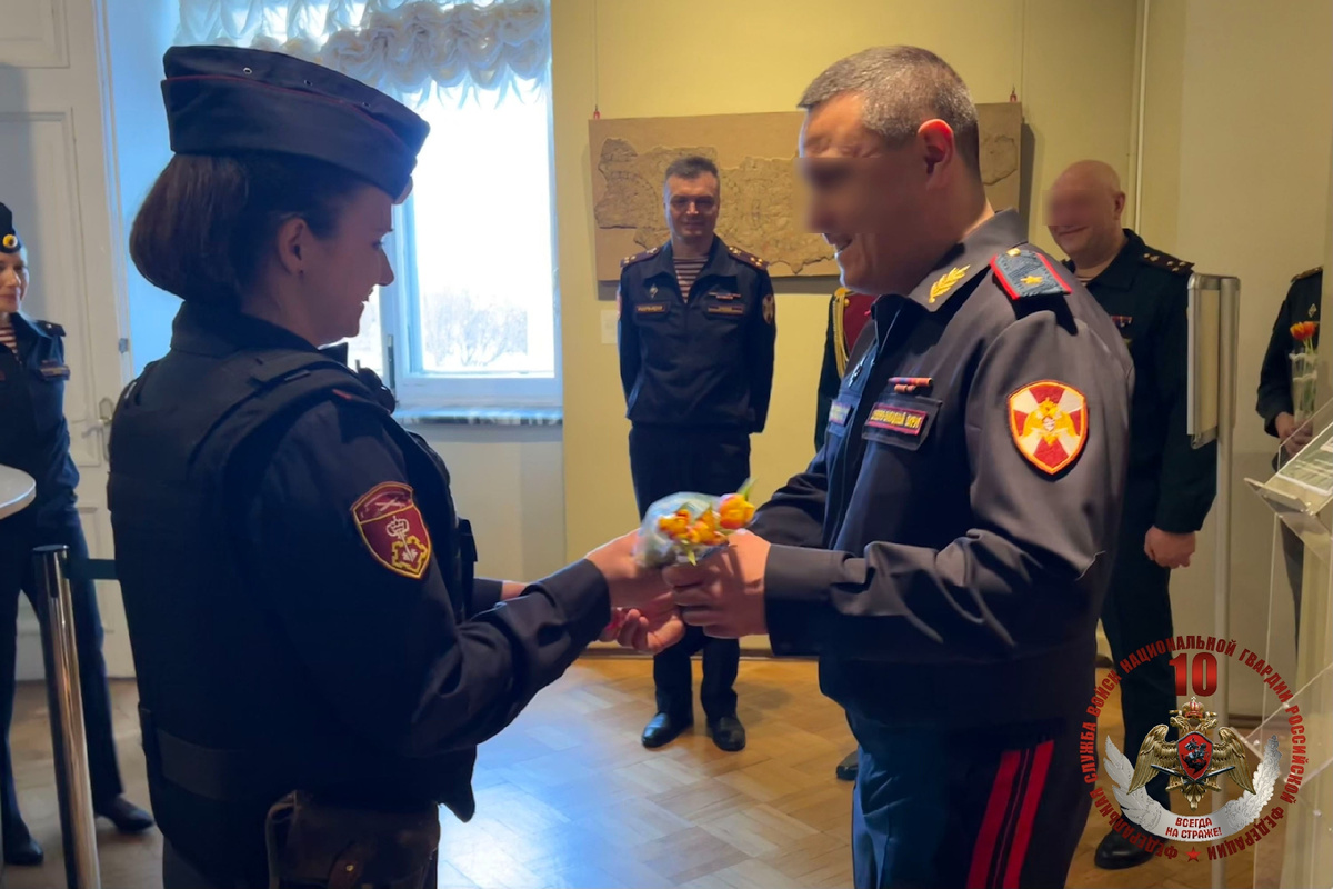Сотрудниц Росгвардии, несущих службу по охране Государственного Эрмитажа, поздравили с Международным женским днём