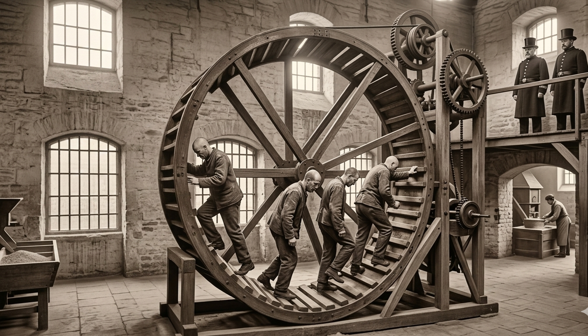 Если в спортзале вам кажется, что беговая дорожка — это пытка, вы абсолютно правы. В начале XIX века английский инженер Уильям Кьюбитт придумал её как средство наказания для заключённых.
