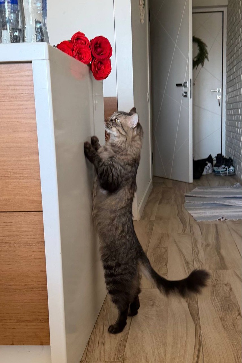 Котики тоже умеют подмазаться к поздравлениям.Главное встать красиво и поближе к подарку