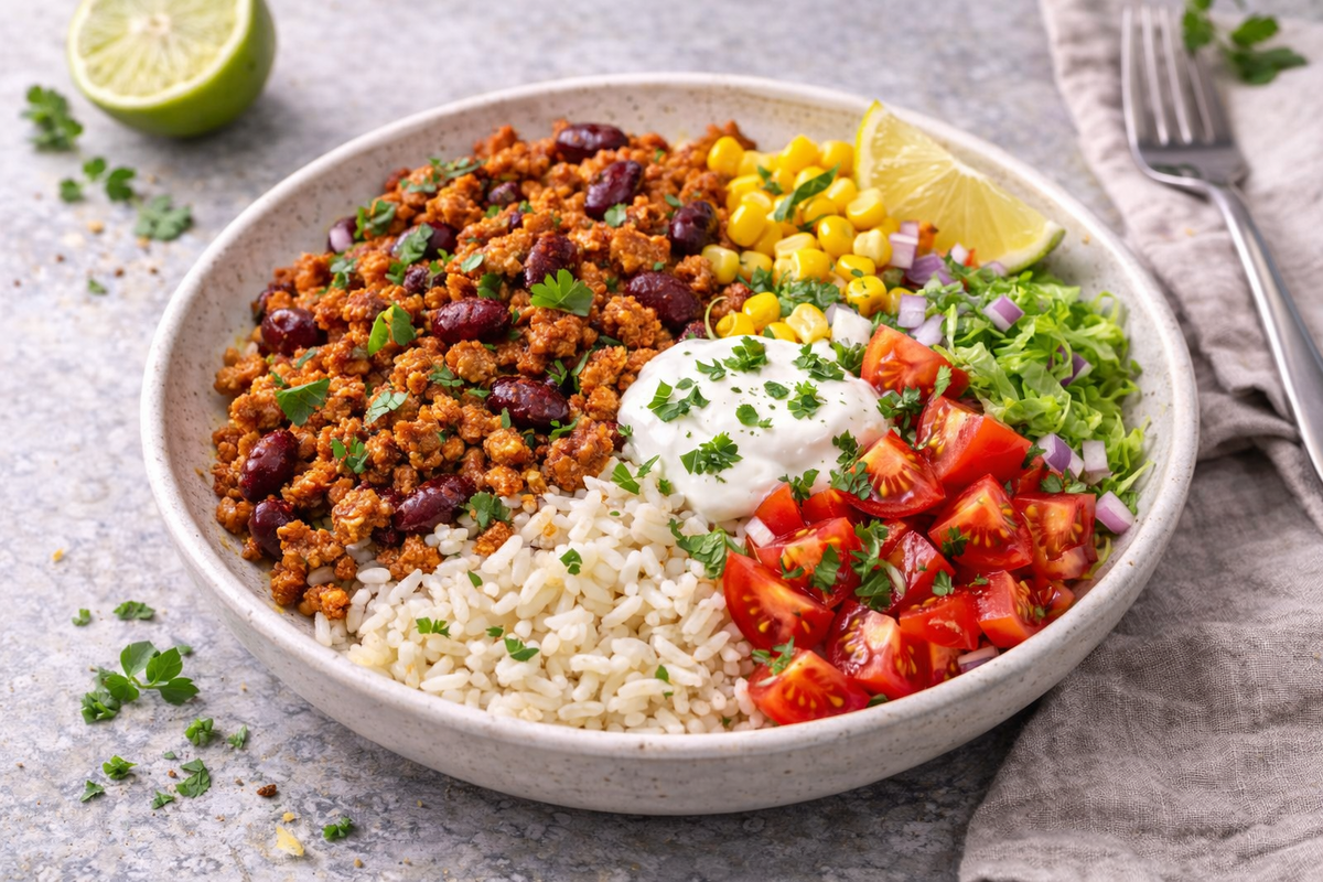 🦃🥗 Тако-боул с индейкой и фасолью: «Вкус мексиканского тако, но полезно и легко - сочная индейка, фасоль, свежий хруст и бодрый лайм-соус»