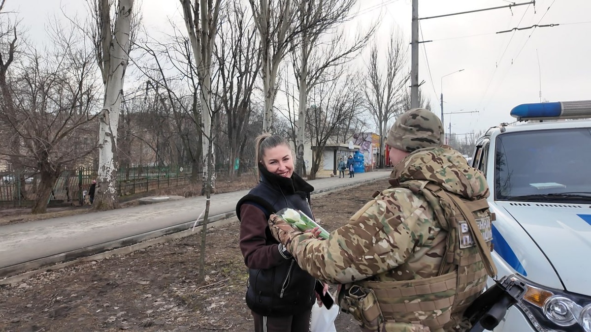 Но не штрафуют, а поздравляют с Международным женским днем и дарят тюльпаны!