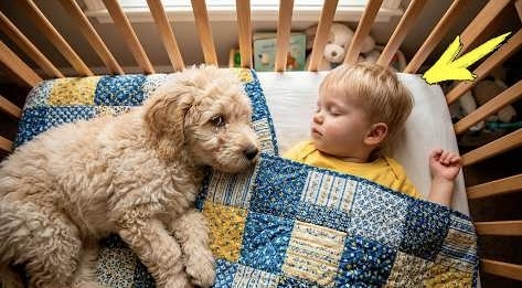 02:35 – Щенок ставит передние лапы на бортик кроватки. Стоит, глядя на мальчика. Мальчик издает звук, похожий на всхлип.