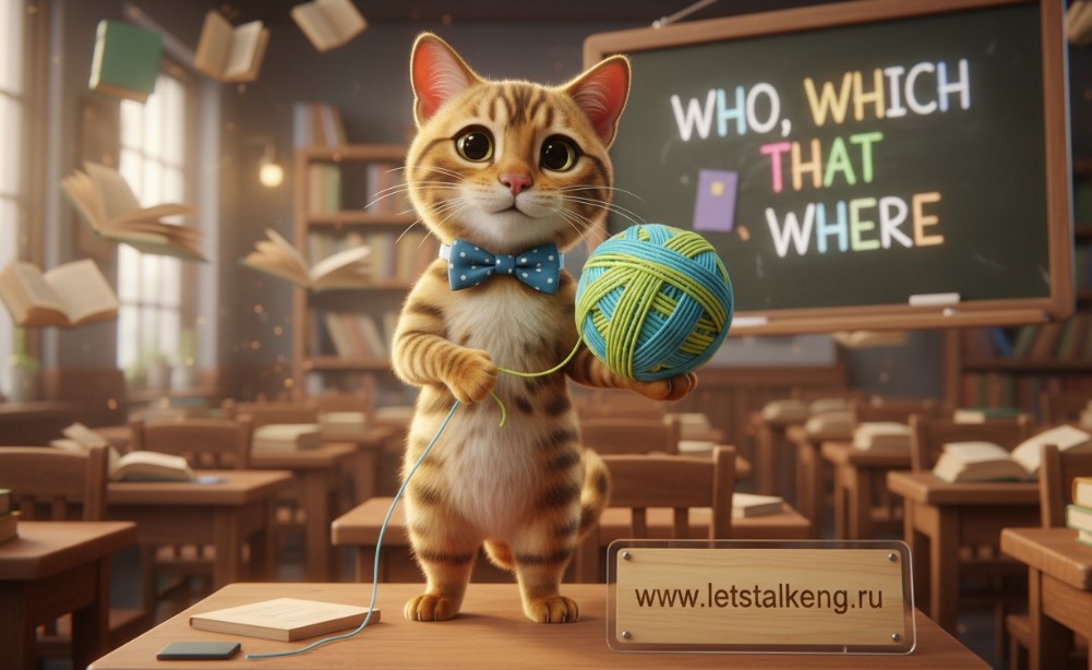 Мяу, мои дорогие ученики! С вами снова Фаня, ваша пушистая помощница и самая умная бенгальская кошечка-репетитор. Вы готовы к новой порции английских секретов? Сегодня мы будем учиться соединять предложения, как настоящие профессионалы. Наша тема — Defining relative clauses (определительные придаточные предложения) и наши волшебные слова-связки: who, which, that, where. Обещаю, это будет paws-itively (мур-р-рчаще) увлекательно! Вот что я приготовила для вас сегодня: Представьте, что слова-связки — это пушистый клей. Мы используем Defining relative clauses, чтобы дать очень важную информацию о человеке, вещи или месте. Без этой информации собеседник просто не поймет, о ком или о чем именно мы говорим! Например, вместо того чтобы говорить короткими фразами, как робот: “Это мужчина. Он спас мне жизнь” (He is a man. He saved my life), мы можем красиво сказать: “Это мужчина, который спас мне жизнь” (He is the man who saved my life). Чувствуете разницу? Мур-р! Давайте разберем наши волшебные