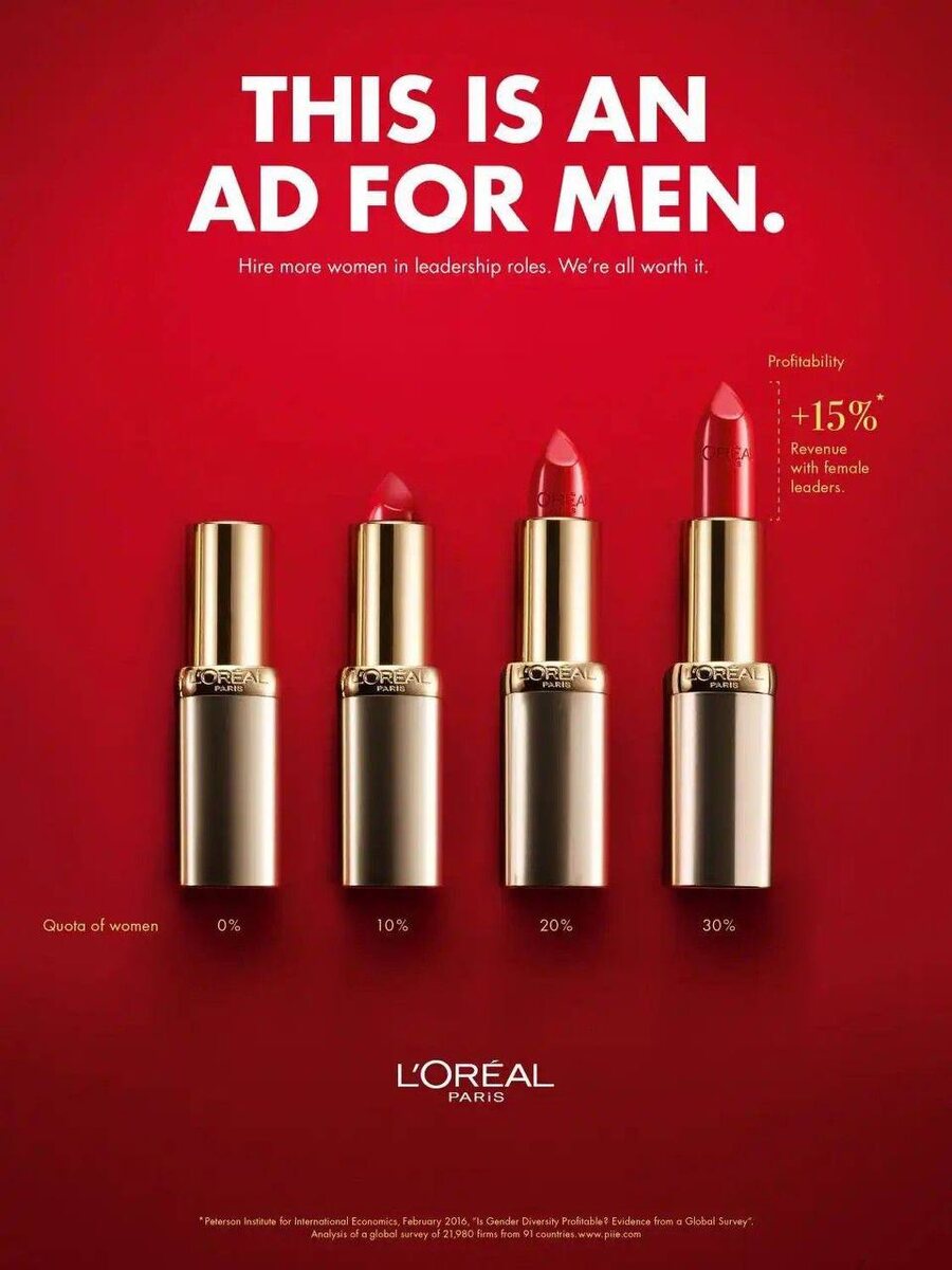 Перевод: Нанимайте больше женщин на руководящие должности. Мы все этого стоим. Рентабельность +15% Доходы от сотрудничества с женщинами-руководителями 😊