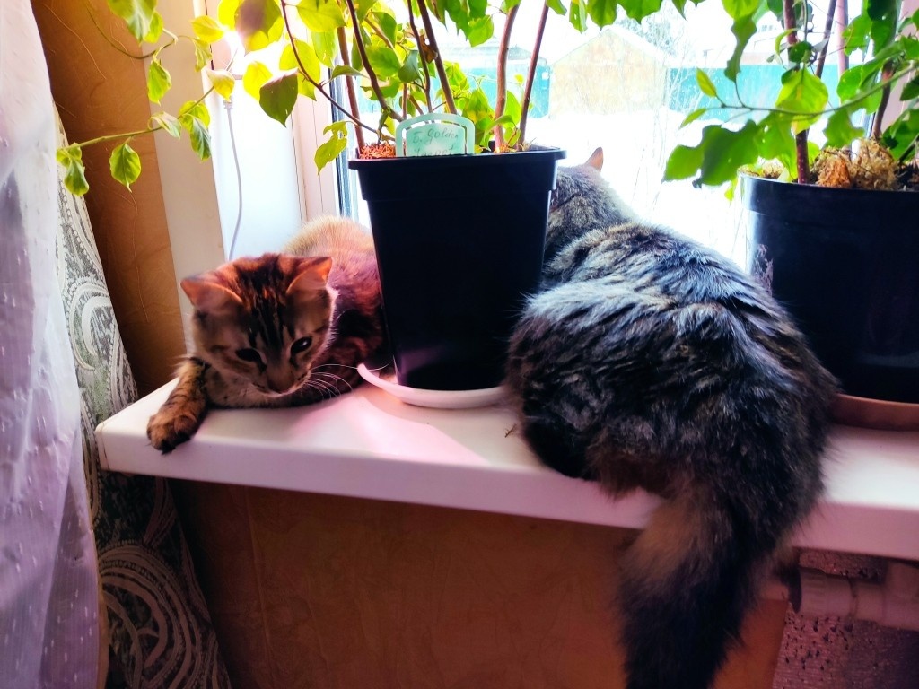Летом наш Васька притащил за шкирку котенка-кошечку. Кошка оказалась сильно похожа на своего папаню. Мы смотрим на Марфушу и не перестаём удивляться её сходству с нашим Васькой. Если в первые дни мы немного сомневались, что они родные друг другу, то теперь… Сомнения давно полностью исчезли. У них очень трогательные отношения. Потому мы и назвали котенка Марфой. Марфа Васильевна, как в старой комедии Гайдая. Марфуша, поскольку маленькая Но зачем он её притащил? И откуда? Именно этот вопрос мы задавали себе в первое время. Поскольку у нас частный сектор. Не дачный поселок, куда городские жители приезжают только на летний теплый сезон. Тут везде люди живут постоянно. И нет в принципе ни одного бездомного кота или кошки. Теоретически… Читайте также: Как кот Семка ночью был в панике, а днем спит — пушками не разбудишь (д) Хотя… Если какая-то кошка решила от всех спрятать своих котят где-то в пустующем сарае… То у этих котят могли бы быть шансы какое-то время быть в статусе бездомных. На тот