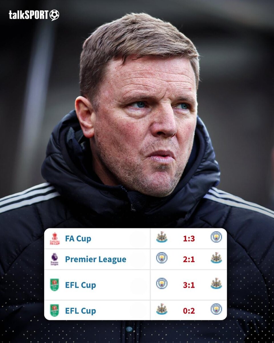 Впервые в своей истории "Ньюкасл" потерпел четыре поражения от одной команды в течение сезона. В теории "сороки" еще могут взять реванш у "Манчестер Сити" в финале Лиги Чемпионов 😲