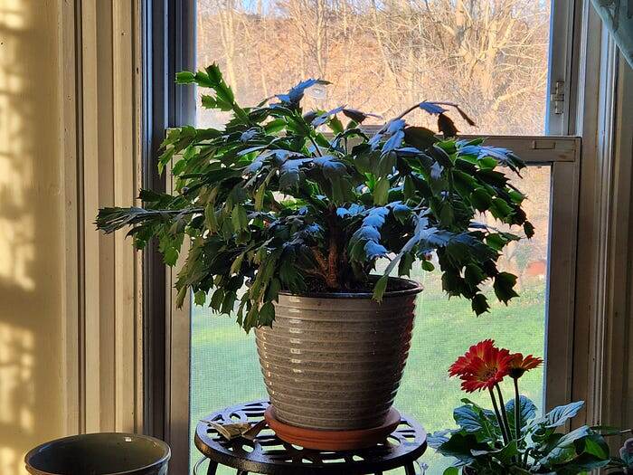 Годами у меня было только одно комнатное растение — рождественский кактус, подарок моей невестки. Она гораздо лучше обращается с растениями чем я, поэтому я ожидала, что он быстро погибнет. Но после десяти лет прохладного внимания он процветает.