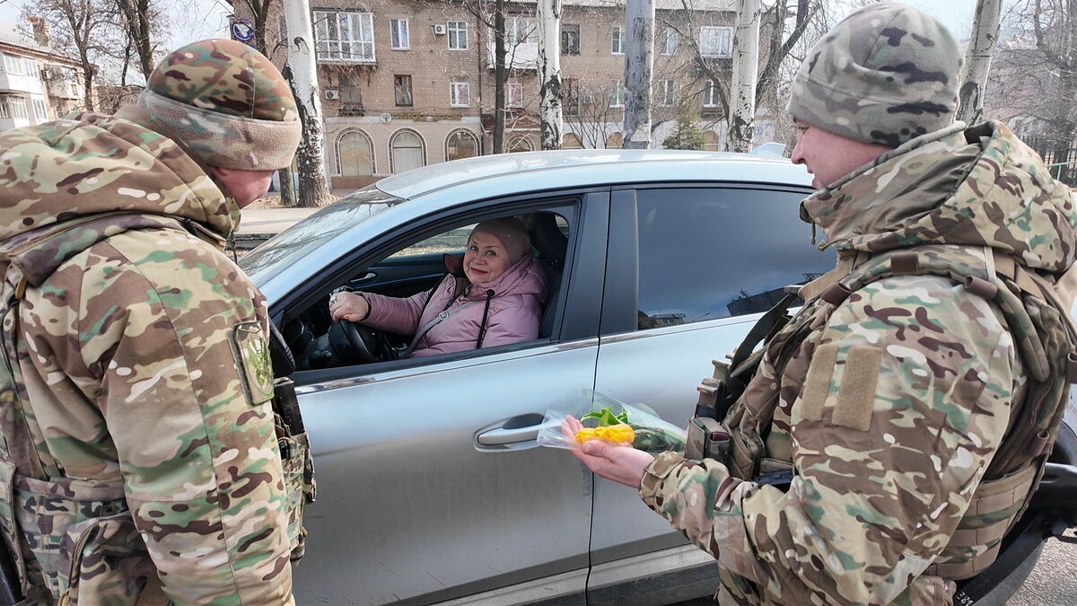 Инспекторы военной автомобильной инспекции группировки войск «Центр» поздравили женщин с Международным женским днем на дорогах ДНР в зоне СВО. Об этом сообщили в пресс-службе Минобороны России. Военнослужащие останавливали проезжающие машины и поздравляли автоледи с праздником: вручали дамам цветы и желали здоровья, благополучия и мирного неба. Девушки были приятно удивлены такому вниманию. В ответ они выражали теплые слова признательности и искренние пожелания удачи в службе. Подобные акции стали доброй традицией. Несмотря на выполнение задач по обеспечению безопасности дорожного движения и контролю передвижения военного транспорта в зоне СВО, бойцы находят возможность дарить людям немного праздничного настроения. Мужчины круглосуточно обеспечивают безопасность на дорогах ДНР, контролируя движение техники и поддерживая взаимное уважение. 16+ Фото предоставлено Минобороны России Еще больше интересного на главной странице и в наших соцсетях: ВКонтакте, Telegram или Одноклассники.