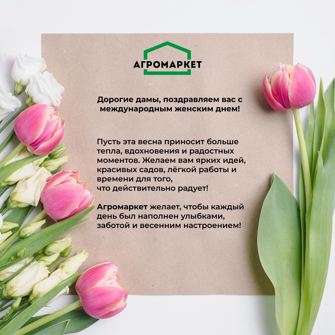 ! 🌷 Команда Агромаркет поздравляет с международным женским днем и желает тепла, радости и отличного настроения. Пусть эта весна приносит только приятные события и новые возможности! 🌸