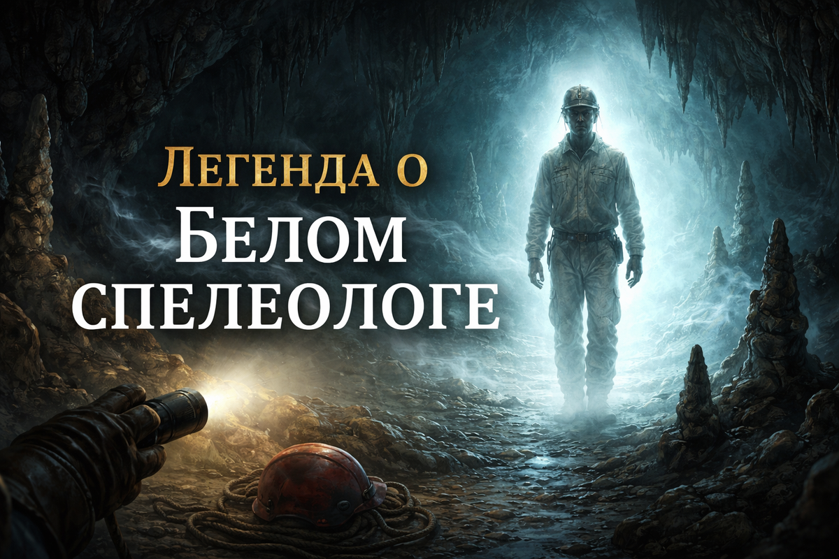 В комментариях к посту про Чёрного альпиниста мне написали, что есть ещё одна похожая история — легенда о Белом спелеологе. И действительно, среди спелеологов по всей России она известна давно. Вариантов много, но суть везде примерно одна. Говорят, Белый спелеолог — это дух человека, погибшего под землёй. После смерти он будто бы остался хранителем пещер. Его описывают как молодого парня в сильно выцветшем комбинезоне, почти белом от времени и известковой пыли. Иногда в каске, но без фонаря. Появляется он неожиданно и так же неожиданно исчезает. Легенда подчёркивает двойственность его характера: тем, кто относится к пещерам уважительно, он помогает, а тех, кто ведёт себя легкомысленно, наказывает. Мои друзья-спелеологи поделились со мной такой версией этой легенды. Когда-то он был обычным человеком. Опытным, упрямым, по-настоящему влюблённым в подземный мир. Ходы знал так же хорошо, как другие знают улицы родного города, и всегда возвращался на поверхность, сколько бы ни задерживался в