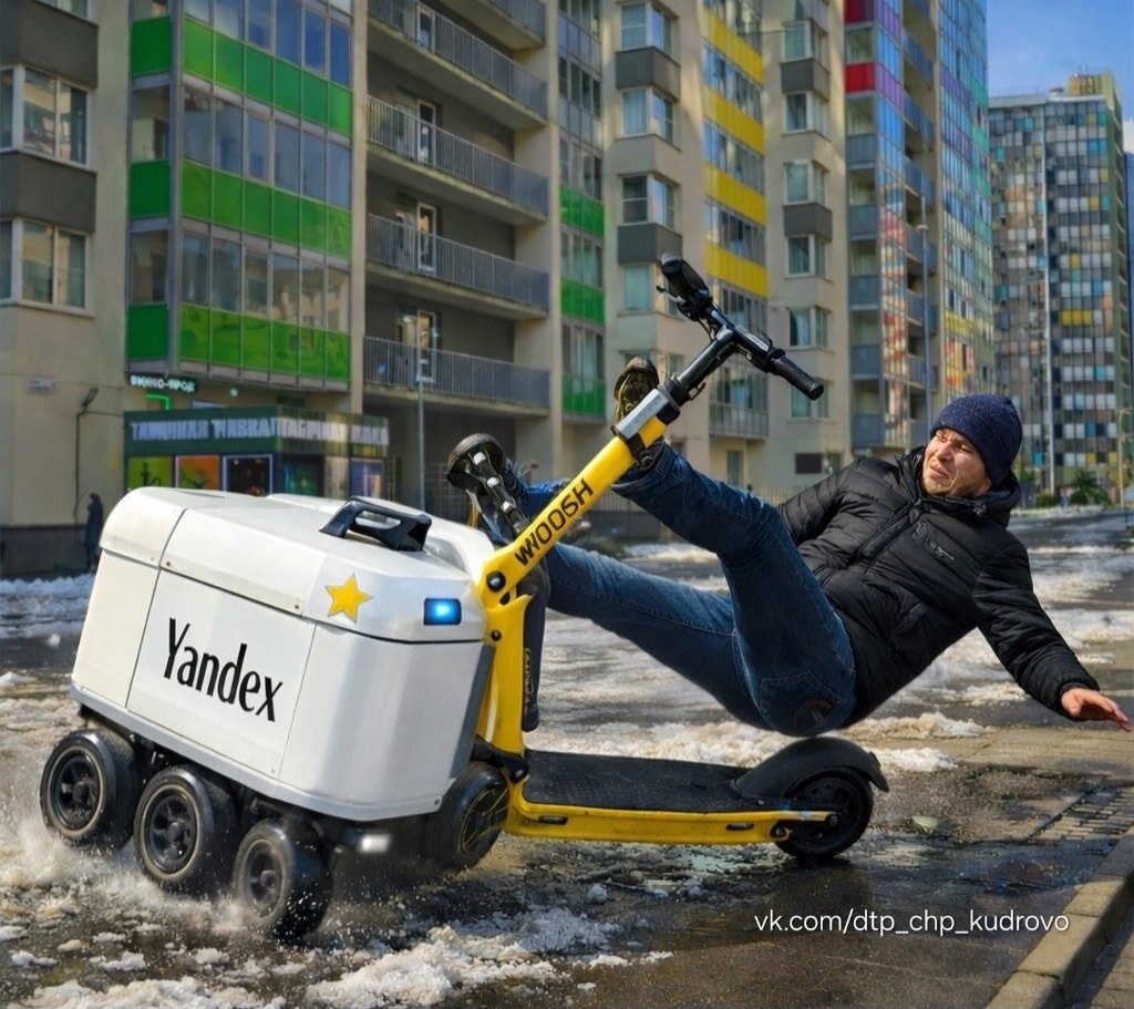 Пока по нашим тротуарам гоняют только самокатчики, «Яндекс» готовит к выпуску новое поколение роботов-курьеров. Говорят, их научат «воспитывать» нарушителей ПДД: «За каждого сбитого самокатчика на корпусе доставщика будут рисовать звезду», — пишут в компании. Учитывая количество самокатов в Кудрово, скоро роботы-доставщики будут выглядеть как ветераны элитных подразделений. 👍 - Если за роботов-карателей 🗿 - Если ты самокатчик и тебе страшно ДТП и ЧП Кудрово