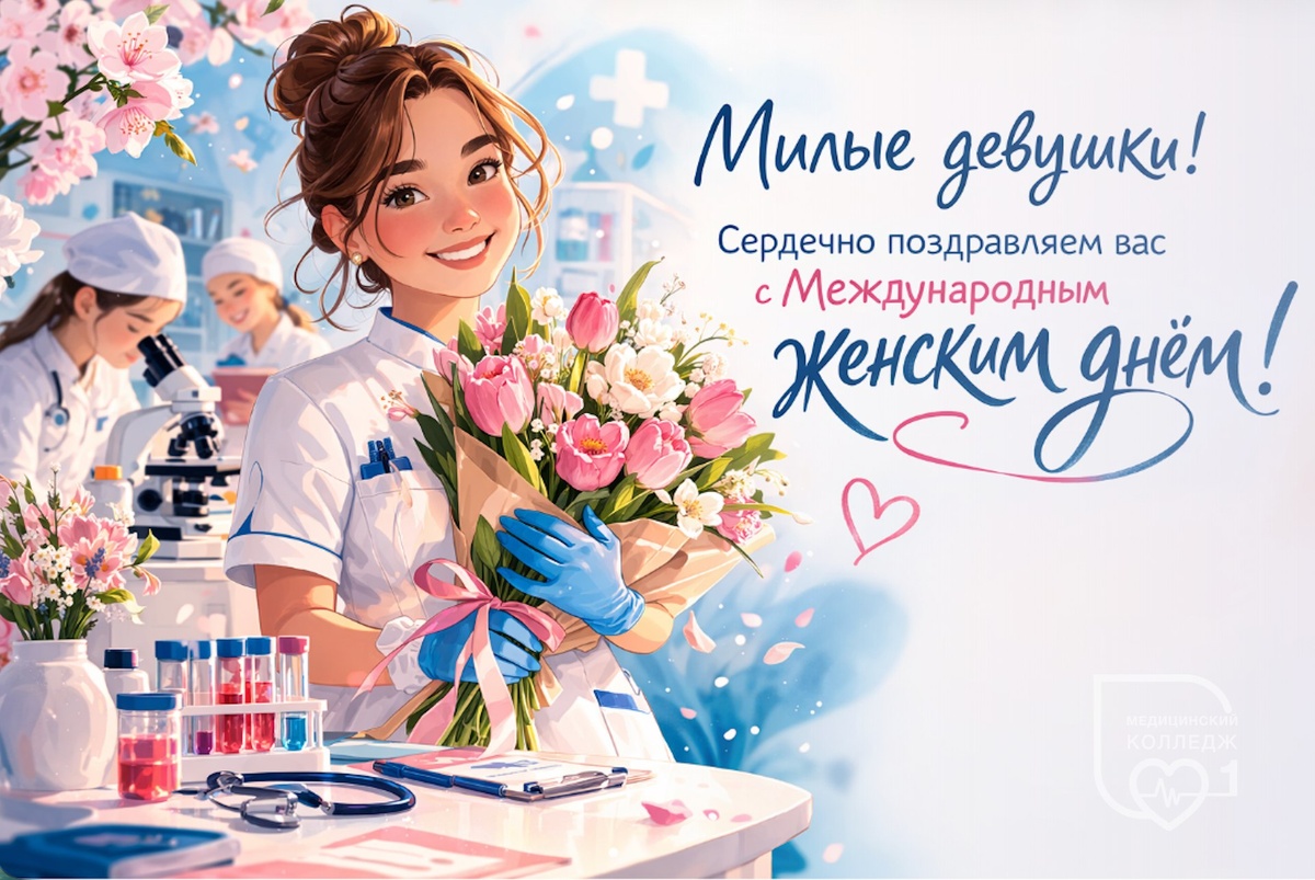 ! Сердечно поздравляем вас с Международным женским днём! 🌷 Ваши забота, энергия, доброта и внутренняя сила делают мир светлее и теплее. Вы вдохновляете, поддерживаете, создаёте красоту вокруг себя, воплощаете смелые идеи и каждый день наполняете жизнь гармонией. ❤️ Спасибо вам за душевность, мудрость, нежность и ту особую атмосферу, которую вы приносите в этот мир. Пусть эта весна подарит вам радость, улыбки, любовь и как можно больше счастливых моментов! С праздником! С наилучшими пожеланиями, коллектив Медицинского колледжа №1 💐